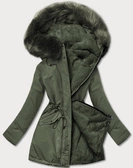 Khaki dwustronna zimowa parka na futrze