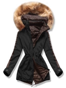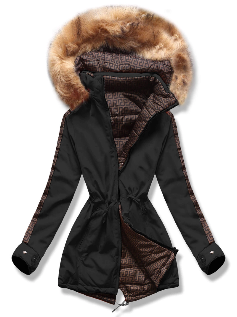 Czarno brązowa dwustronna damska kurtka pikowana z kapturem