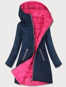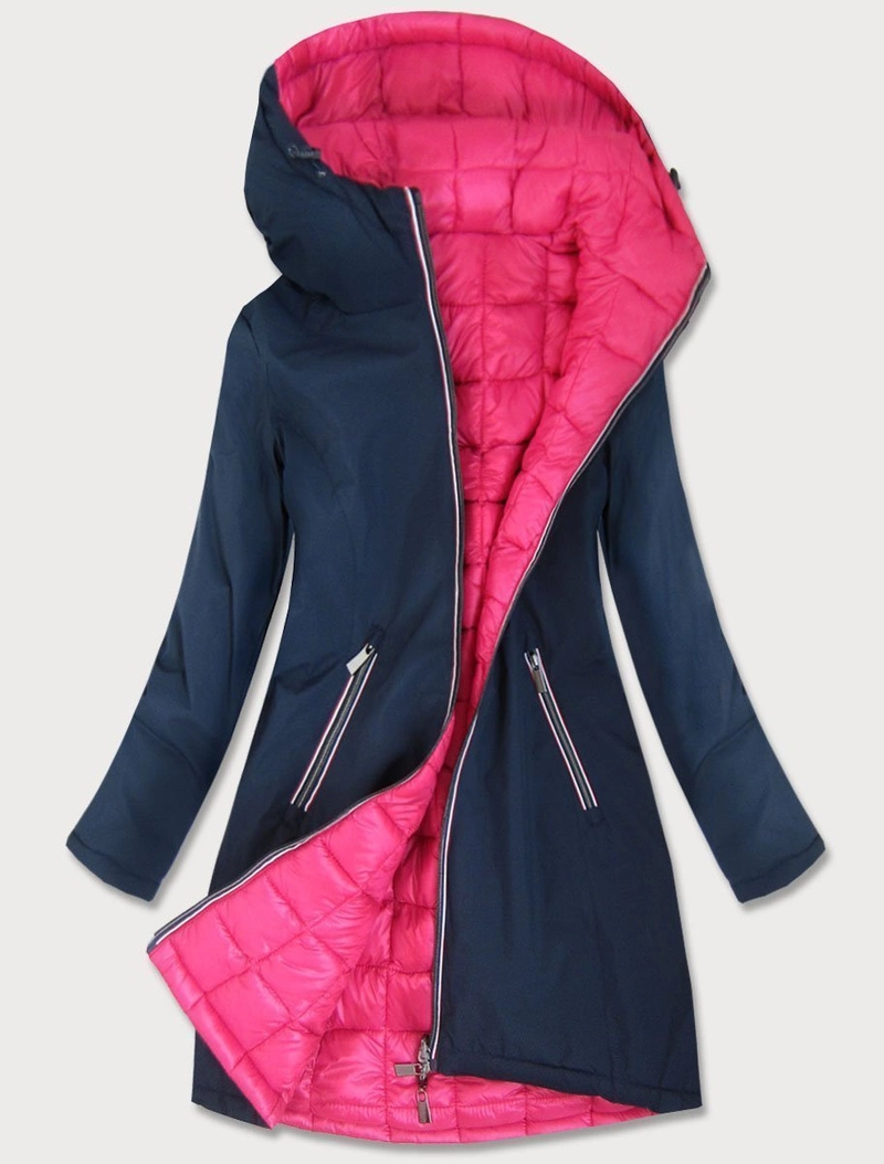 Granatowo-różowa przejściowa dwustronna damska kurtka z kapturem
