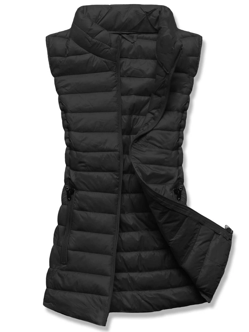 Czarny dwustronny bezrękawnik kamizelka ze stójką i regulowanym ściągaczem