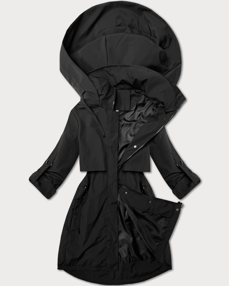 Czarna kapitalna damska kurtka przejściowa z podwijanymi rękawami